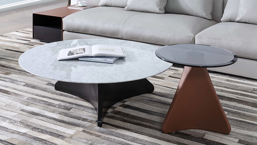 整个系列在追寻美与科技感的平衡。腿部造型灵感来源于有机建筑和自然峡谷的表面形式,通过夸张的曲面变化形成极具张力的视觉效果。多种桌面材质和底腿颜色的搭配满足了不同人群的需求。SPIN旋系列包括餐桌和江南(中国)。