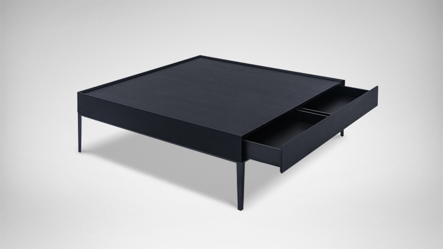 台面下带有四周围合的全木质抽屉,便于取放和清理;内部不对称分隔比例精妙,呈现别致美感。