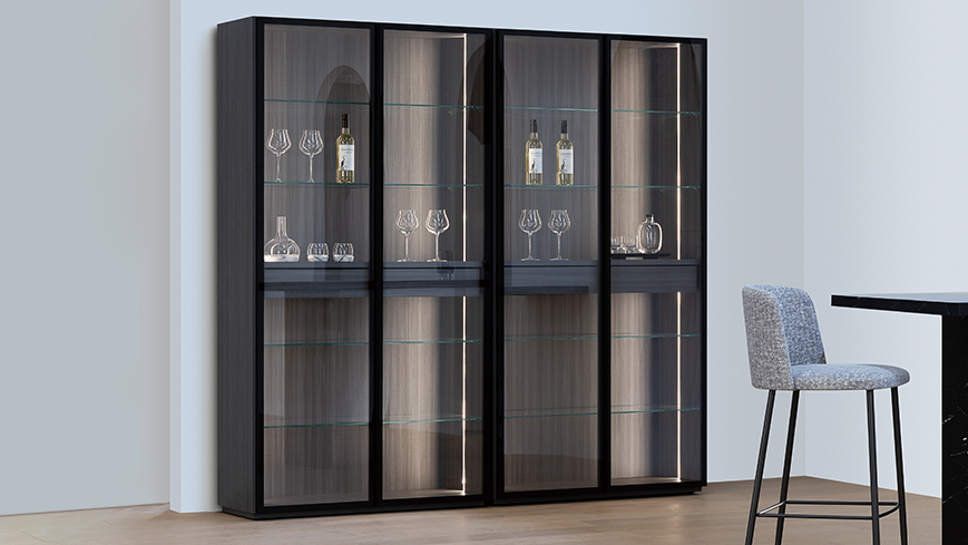 单体框架根据功能、比例等需求,可自由组合。既可做气派的书柜、展示柜,又可做重塑空间的艺术多功能柜。